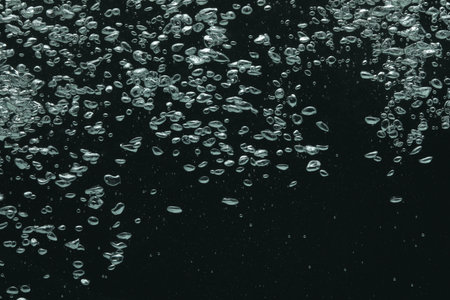 This striking image showcases bubbles rising in clear water within a glass, reflecting themes of purity and refreshment, perfect for beverage or wellness concepts.