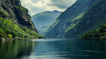 A Stunning Geirangerfjord with deep blue water and majestic mountains