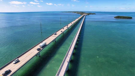 Aerial view along the seven mile bridge of US1 to the florida keys