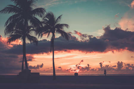 Miami Beach skyline at sunset with palm trees. Florida. USA.