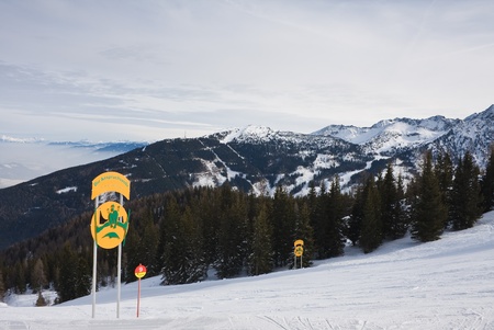 Austria. Alps. Ski track on the slope, natural landscape