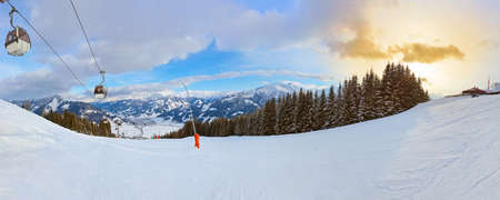 Skiing in Austria. Famous winter resort in Alp mountain range