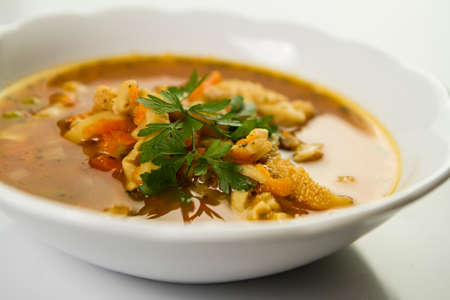 Traditional and very popular in east and south Europe soup from beef tripe with marjoram and parsley.