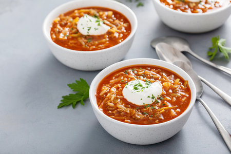 Cabbage roll and tomato soup with ground beef and rice, polish or ukrainian recipe