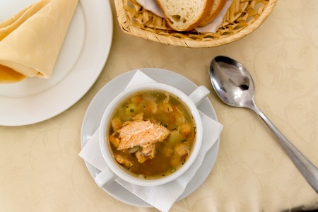 Delicious fish soup from fresh salmon