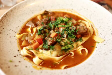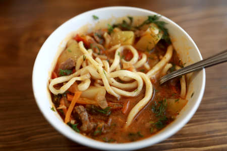 Laghman soup with meat and vegetables