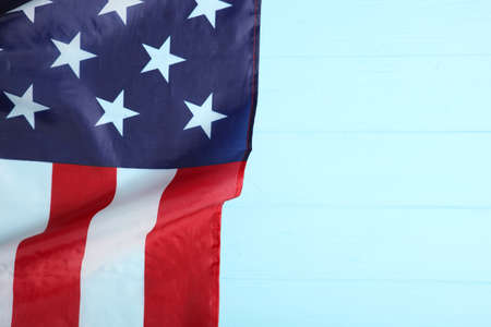Top view of Flag of the United States of America on white background. Independence Day USA, Memorial.