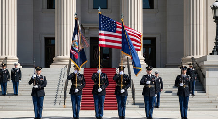 Military parade featuring the American flag, a proud display of national honor and duty.