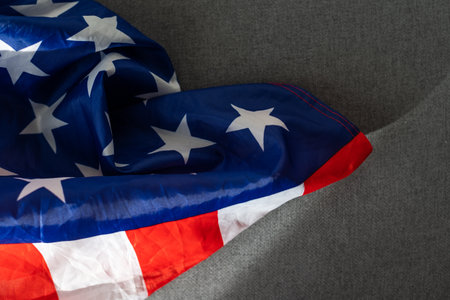 American flag on a gray background. US independence day. Copy space for text.