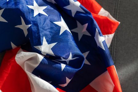 Close-up american flag, USA flag background with copy space. Top view