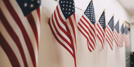 American flags garland on the white wall. Generated AI