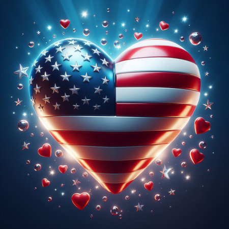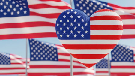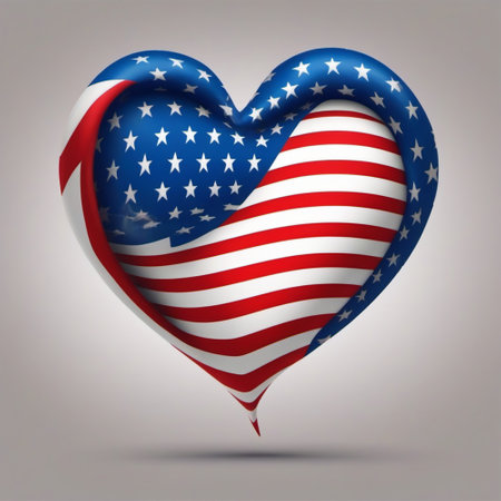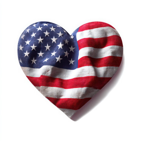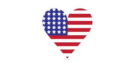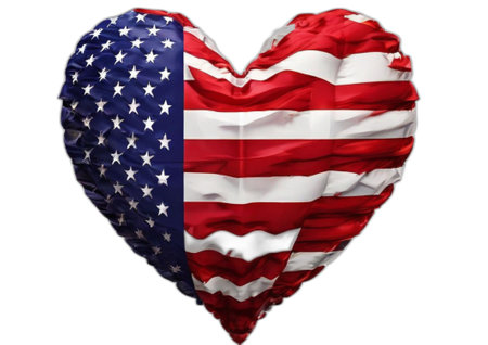 A heart shape filled with the American flag design, featuring stars and stripes. It symbolizes patriotism and love for the United States, displayed prominently on a clean field.