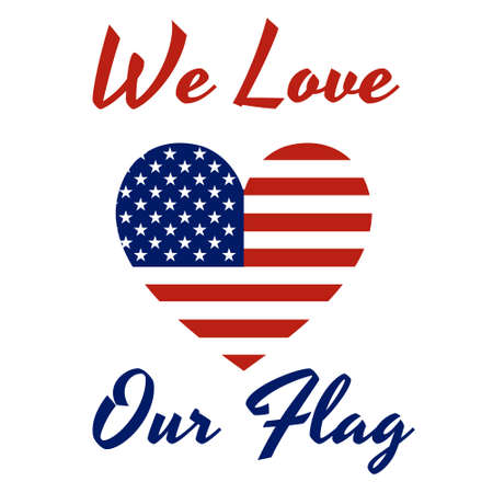 Heart shaped national flag of The United States of America with inscription: National Flag Day, June 14, We Love Our Flag in modern style with patriotic colors. Vector EPS10 illustration