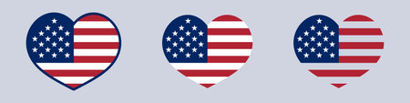 USA flag in a shape of heart. Patriotic national symbol of United States of America. Independence day graphic design element. Simple flat vector illustration.