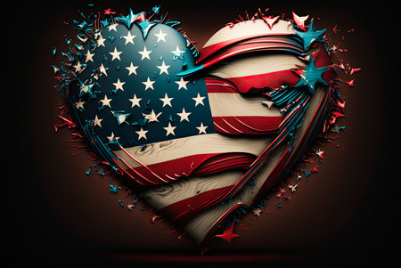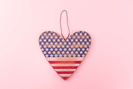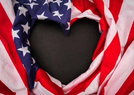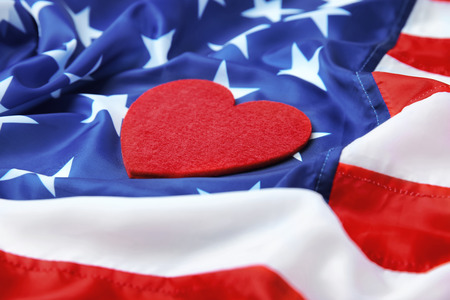 Heart symbol on usa flag. Symbol of patriotism, love and freedom. The concept of American independence and the celebration of Valentine's Day. Dark background.