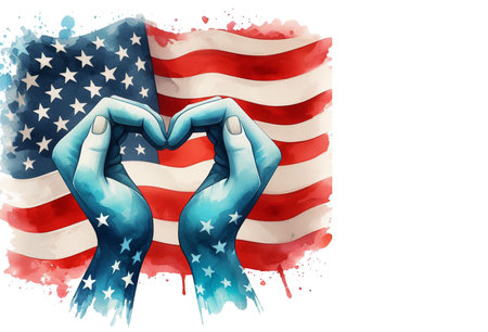 heart shaped american flag paper quilling style on a blue background with copy space. illustration created by Generative AI