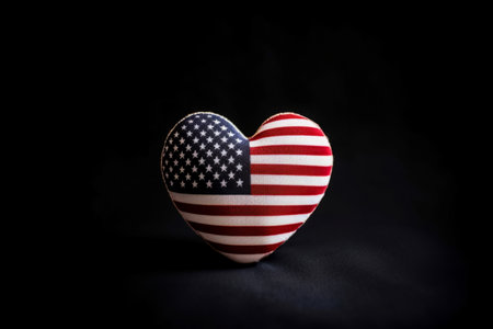 Enduring Patriotic heart with USA flag on black background. National American love loyalty flag sign. Generate ai