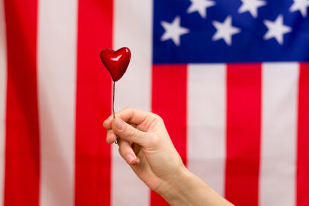 A child holds a lovingly crafted heart with the American flag, showcasing warmth and patriotism. This vibrant image symbolizes love and national pride.