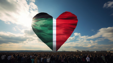 wooden heart painted in the colors of flag of Italy green, white and red on yellow background