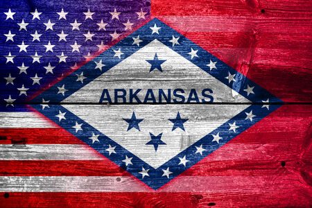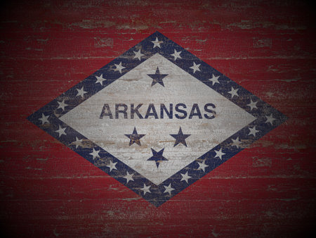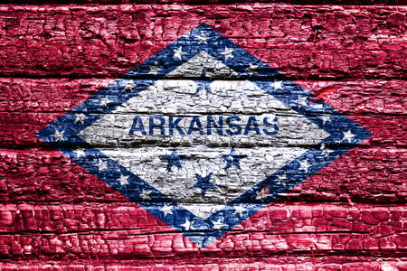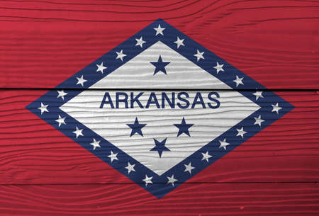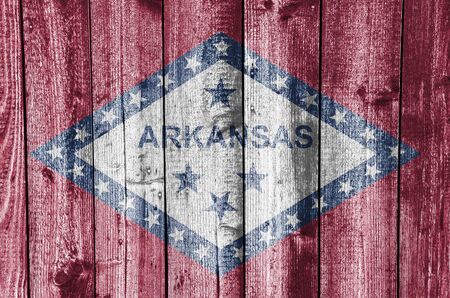 Flag of Arkansas on wooden wall background. Grunge Arkansas flag texture, The states of America.