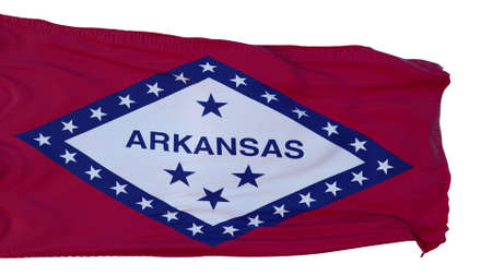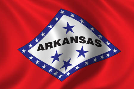 Rendering of a waving flag of the US state of Arkansas with accurate colors and design and a fabric texture.