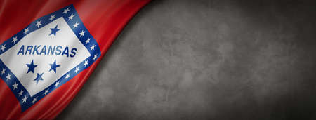 Arkansas flag on concrete wall banner, USA. 3D illustration
