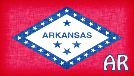 Linen flag of the US state of Arkansas with it's abbreviation stitched on it