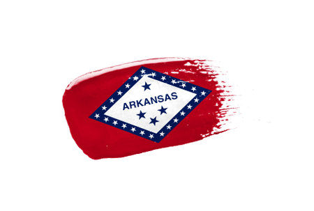 Art brush watercolor painting of Arkansas flag blown in the wind isolated on white background eps 10 vector illustration.