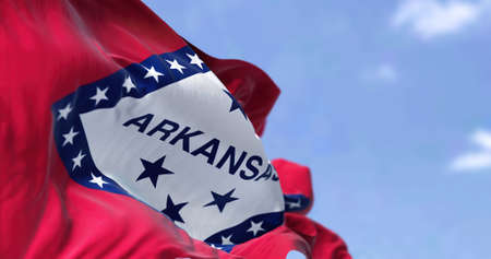 The state flag of Arkansas waving in the wind. Democracy and independence. American state.
