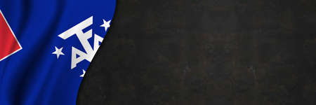 French Southern and Antarctic Territories flag on concrete wall. Banner with fabric texture of the flag of French Southern and Antarctic Territories.