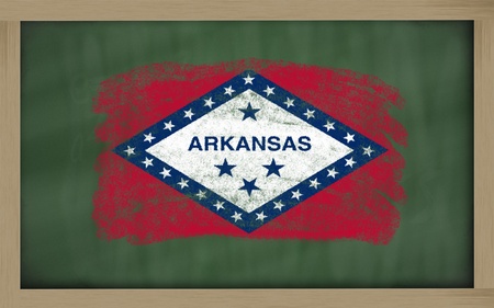 Chalky american state of arkansas flag painted with color chalk on old blackboard