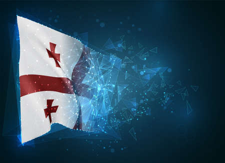 Georgia, vector flag, virtual abstract 3D object from triangular polygons on a blue background