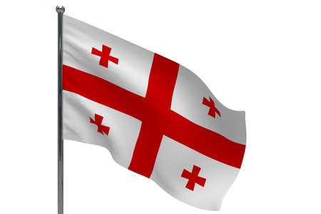Georgia flag on pole. Metal flagpole. National flag of Georgia 3D illustration isolated on white