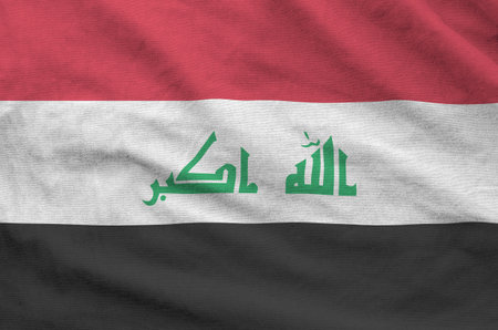 Iraq flag is depicted on a sports cloth fabric with many folds. sport team banner