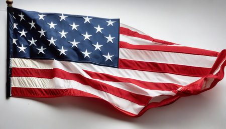 American flag of the United States on a white background. American President's Day, USA Independence Day, American flag colors background, 4 July, February holiday, stars and stripes, red and blue