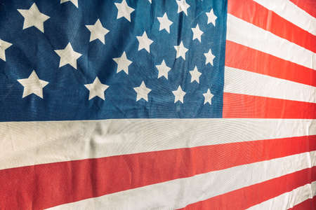 Close up of United of America flag in warm retro style and back light, selective focus, good for USA theme background or 4th of July concept