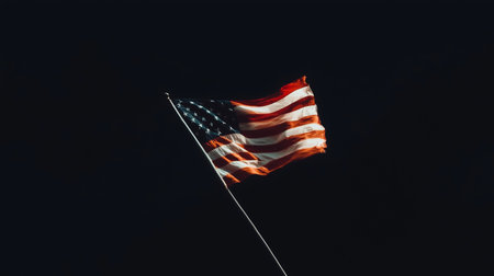 American flag waving against a dark sky at night, symbolizing patriotism and freedom in a serene moment