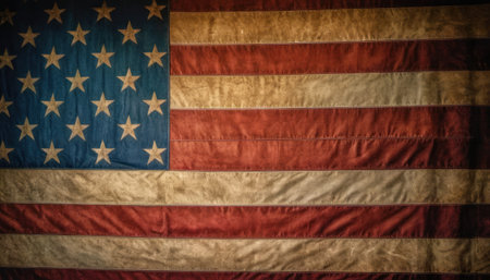 Antique America flag waving pattern background in red blue white color concept for USA 4th july independence day, symbol of patriot freedom and democracy. Glory pride in memorial day of liberty