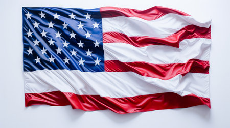USA flag folded on white background. American flag with effect top view. Memorial day and 4th of July, Independence day concept