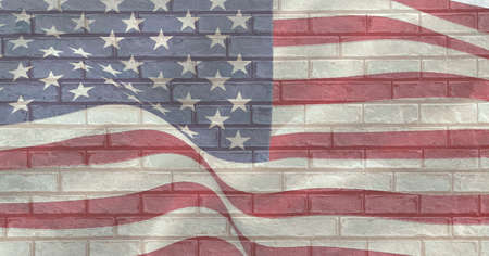Composition of american flag over brick wall. american patriotism and independence concept digitally generated image.