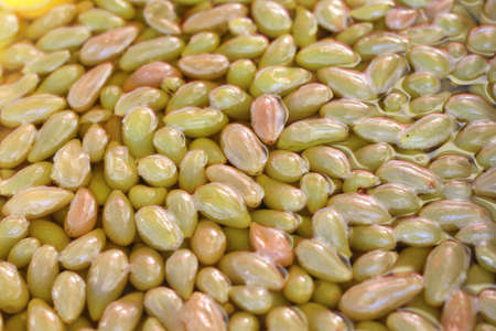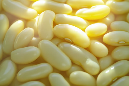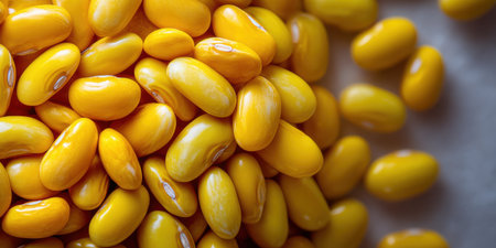 Yellow bean close up with smooth texture and shiny surface top down wide shot composition showing natural detail and vibrant