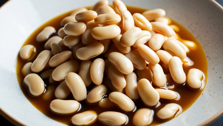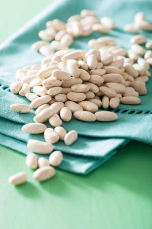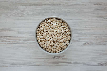 Organic White Cannellini Beans in a White Bowl, top view. Flat lay, overhead, from above.