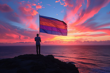 Minimalist pride flag with a clean, geometric design, Contemporary, High contrast, Digital photography