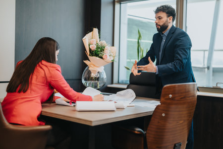 The Dynamic Exchange: Real Estate Agent and Client Engage in Office Discussion