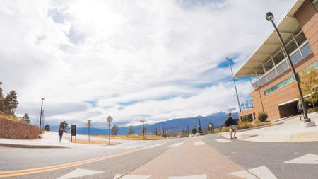 Colorado Springs, Colorado, USA-October 6, 2018 - Driving on university campus of University of Colorado at Colorado Springs in Autumn.