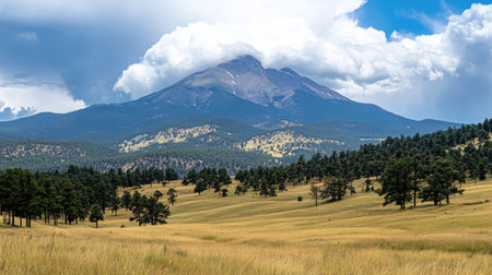 The view of Mount Humphreys and its Agassiz Peak. One of the San Francisco Peaks in the Arizona Pine Forest. Near Flagstaff, Coconino County, Arizona USA