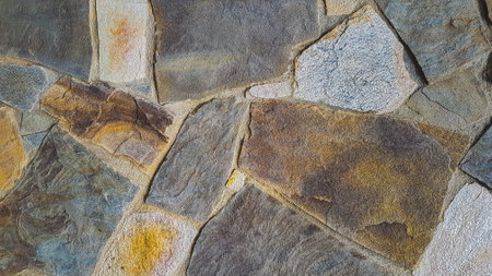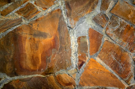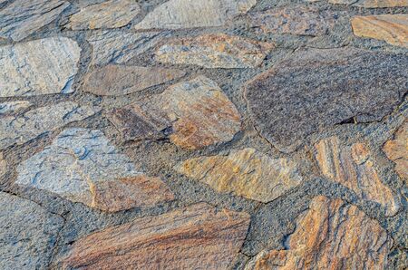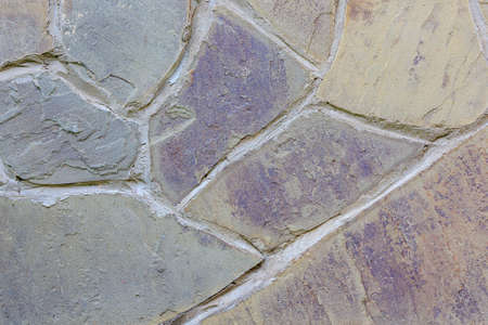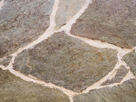 Natural textured background of flagstone stone wall with rough wide cement joints