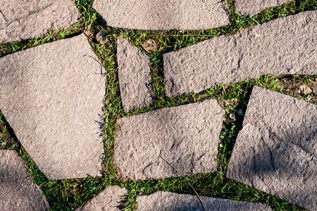 Grass and stone road texture pavement design and pattern.