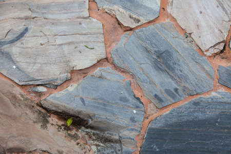 Background blurred Texture granite stone is complex in the fence. Stone wall, background from plate. Abstract granite from the wall texture