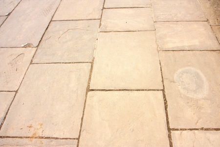 A Flagstone Patio shot at an angle fading into a blurred background.